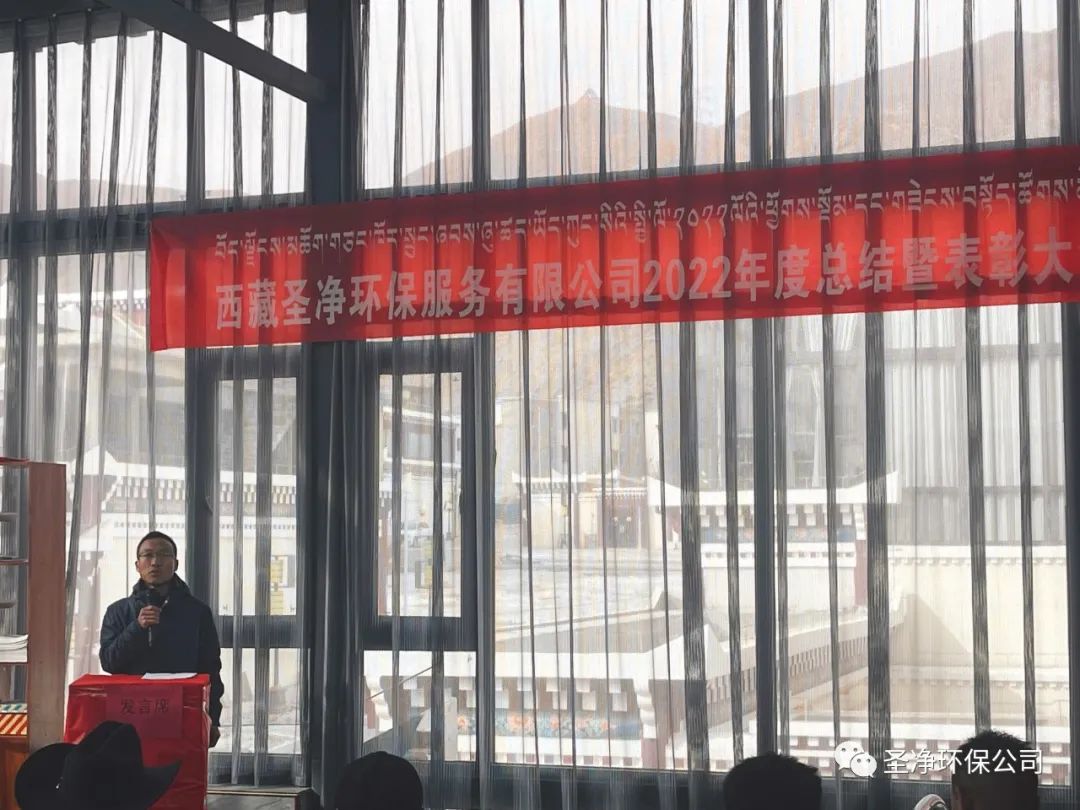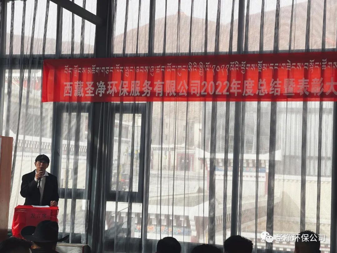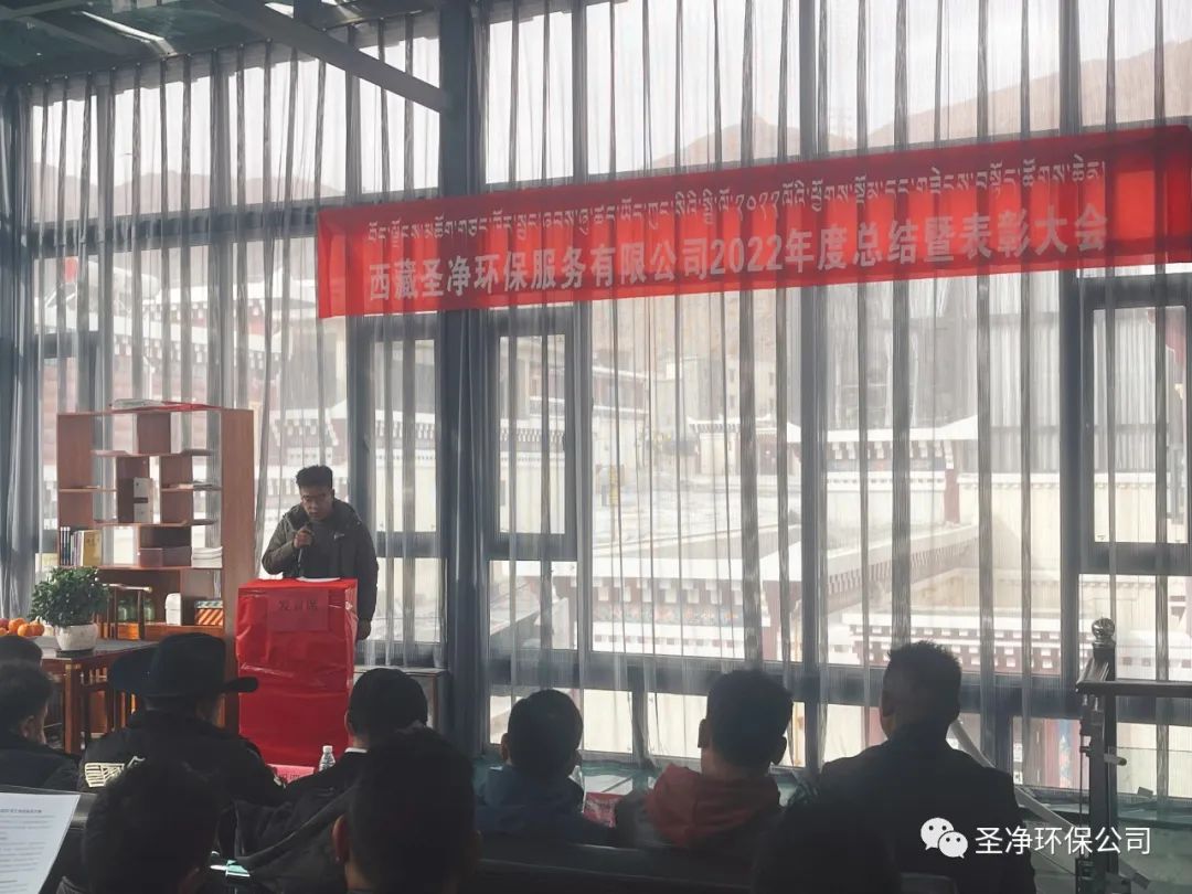 2023年2月17日11:00分,西藏圣凈環(huán)保服務(wù)有限公司在總公司二樓辦公室召開2022年度總結(jié)暨表彰大會??偨?jīng)理達瓦、股東尼瑪羅桑、股東達瓦多吉、副總經(jīng)理尼瑪次仁、公司顧問王常鵬、綜合辦公室主任旦真多吉、商務(wù)部經(jīng)理兼日喀則分公司經(jīng)理朗珍江參及各部門負責(zé)人、各分公司經(jīng)理、環(huán)衛(wèi)項目部經(jīng)理、污水處理廠廠長、優(yōu)秀員工代表和總公司全體員工出席會議。