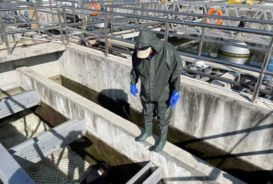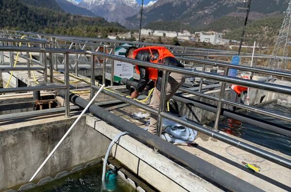 為避免池底及八字口淤泥過(guò)多影響出水水質(zhì),11月17日,吉隆鎮(zhèn)污水處理廠安排工作人員采用人工清洗的方法對(duì)廠內(nèi)的污水池進(jìn)行徹底的清洗。工作人員以高壓水槍和人工洗刷等方式清除二沉池、斜管沉淀池及出水口等地方的青苔及淤泥,沖洗后的污水通過(guò)排空口排到廢水池,進(jìn)行二次處理,污水池及時(shí)清洗很大程度上能避免出現(xiàn)二沉池污泥上浮、藻類(lèi)生長(zhǎng)等問(wèn)題。此次清洗池子既提高了出水水質(zhì),又排除了池子漏水等潛在危險(xiǎn)。沖洗完的污水通過(guò)調(diào)節(jié)池再一次回流到生化池進(jìn)行二次生化處理,使得廠區(qū)所有污水得到了完善的處理。