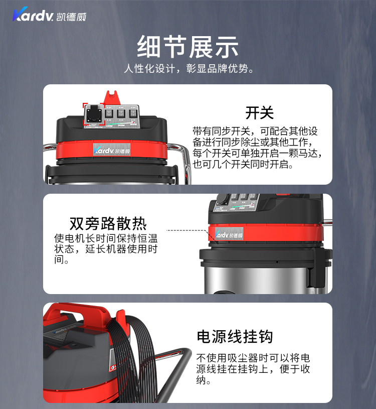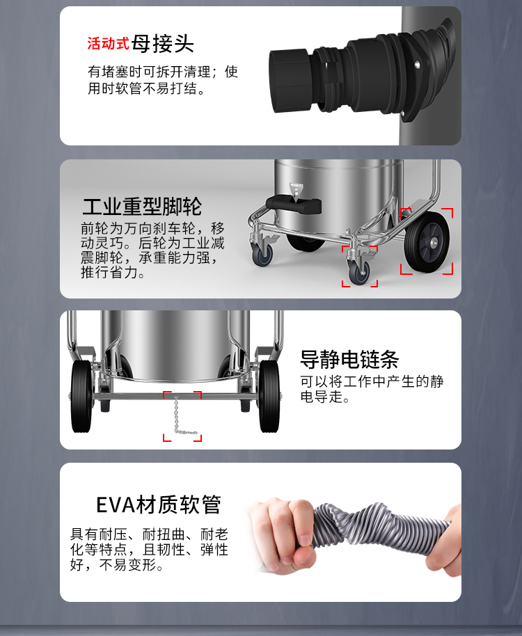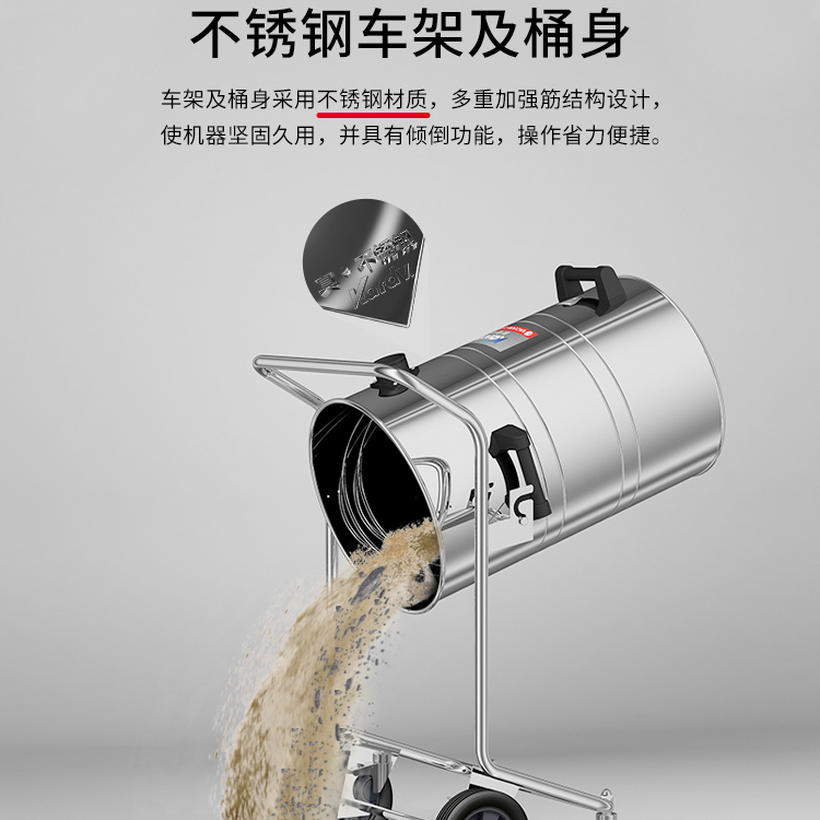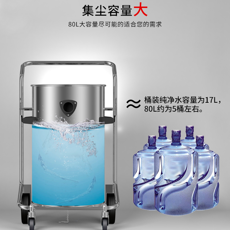 GS-3078B是一款工業(yè)型吸塵器,集塵桶為80L,為不銹鋼材質(zhì),配有不銹鋼車架,在移動(dòng)時(shí)輕巧方便;可以用在工廠、倉庫或建筑工地等場(chǎng)所清理灰塵等,在商業(yè)環(huán)境中也可以使用。